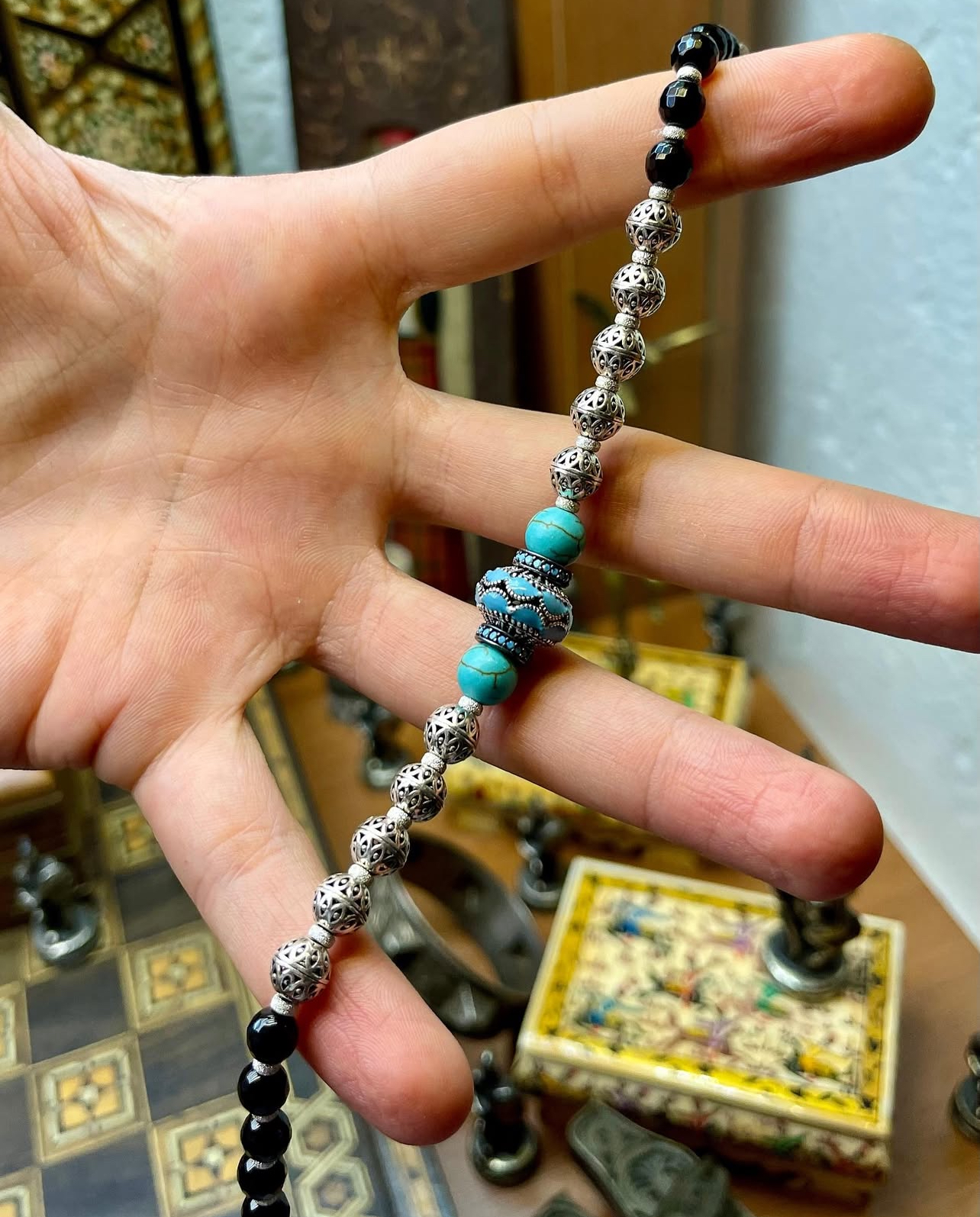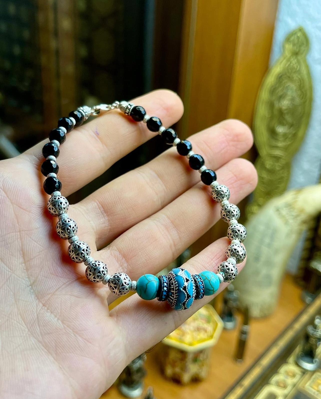 Firuze,Oniks Ve 925 Ayar Gümüşten Hazırladığımız Bileklik Modeli.