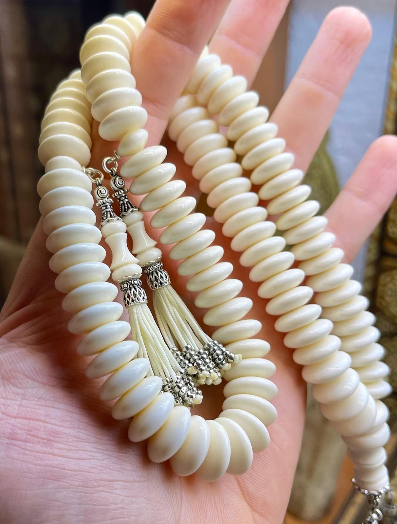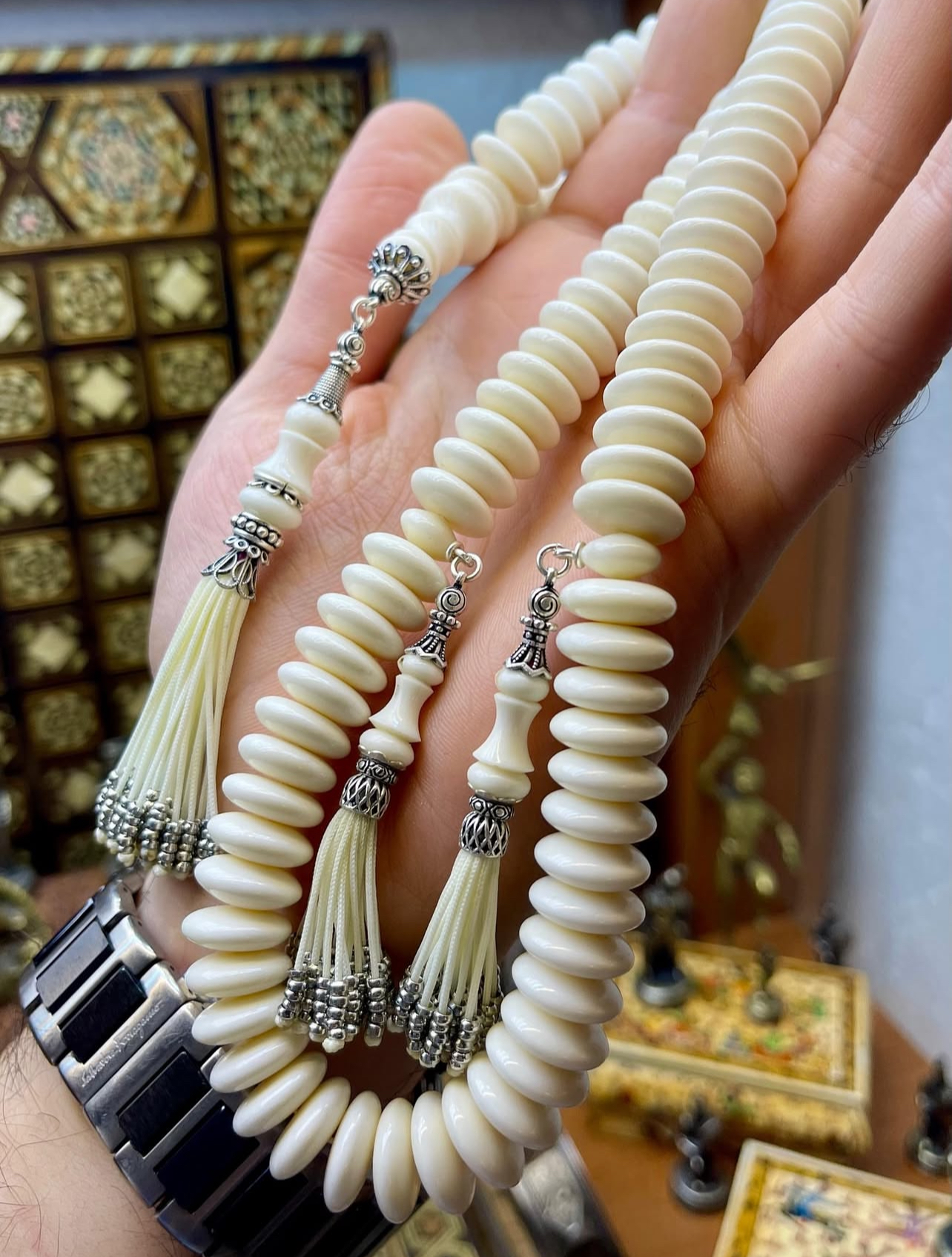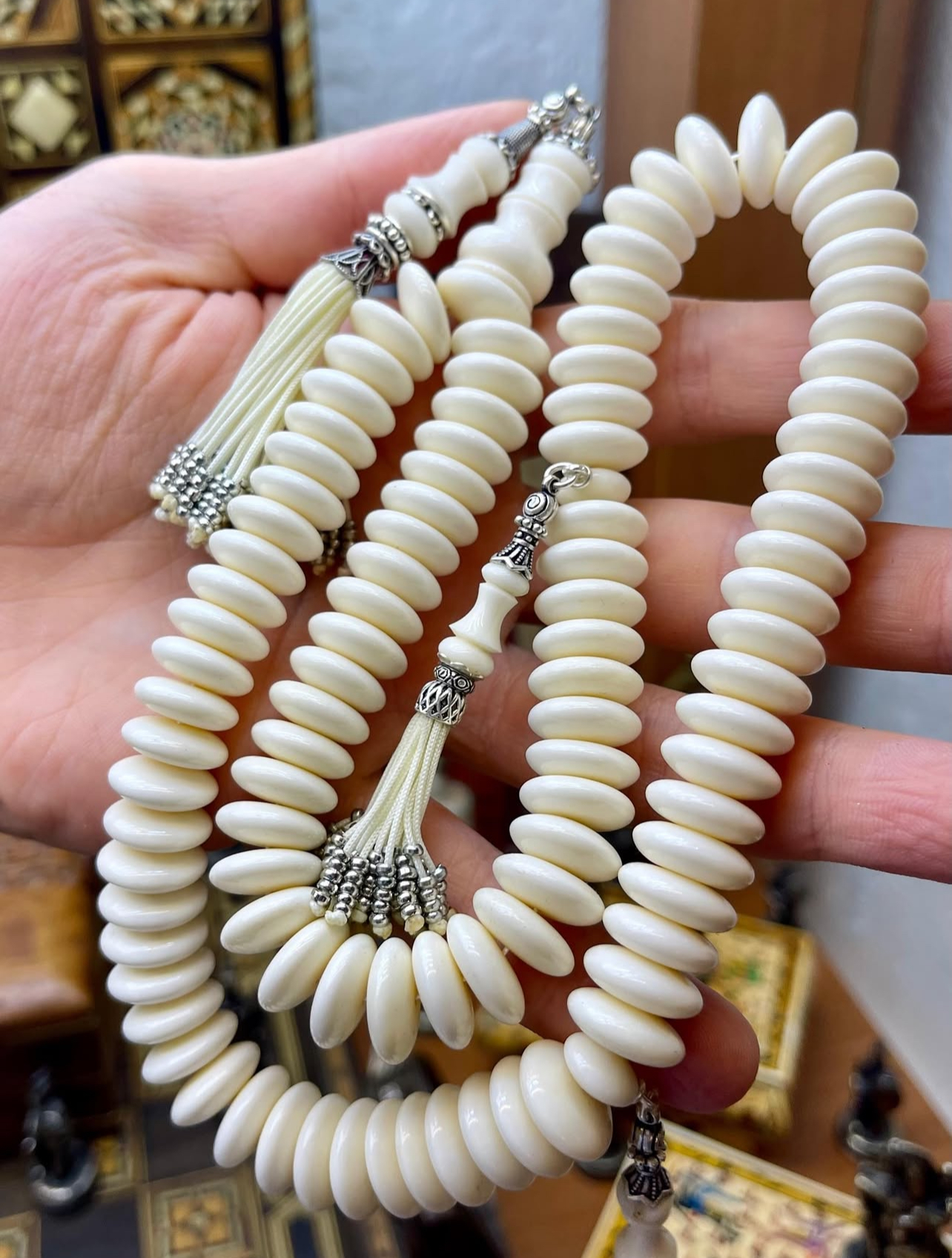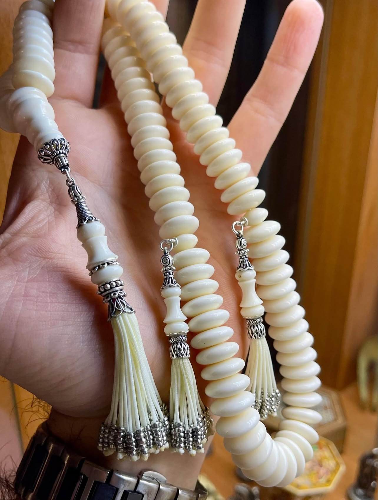 • Malzeme:Deve / 925 Ayar Gümüş • Renk:Beyaz • Kullanım:Günlük Kullanım / Koleksiyonluk • Habbe Ölçüsü:13X5mm • Habbe Sayısı:99 Habbe 925 Ayar Gümüş Püskülü İle Özel Bir Hediye Olarak Mükemmel Bir Seçim Olmasını Sağlayan Kendi Hediye Kutusunda Gelir.Tüm Ürünler Yanlızca Sınırlı Sayıda Mikro Parti Haline Üretilir....