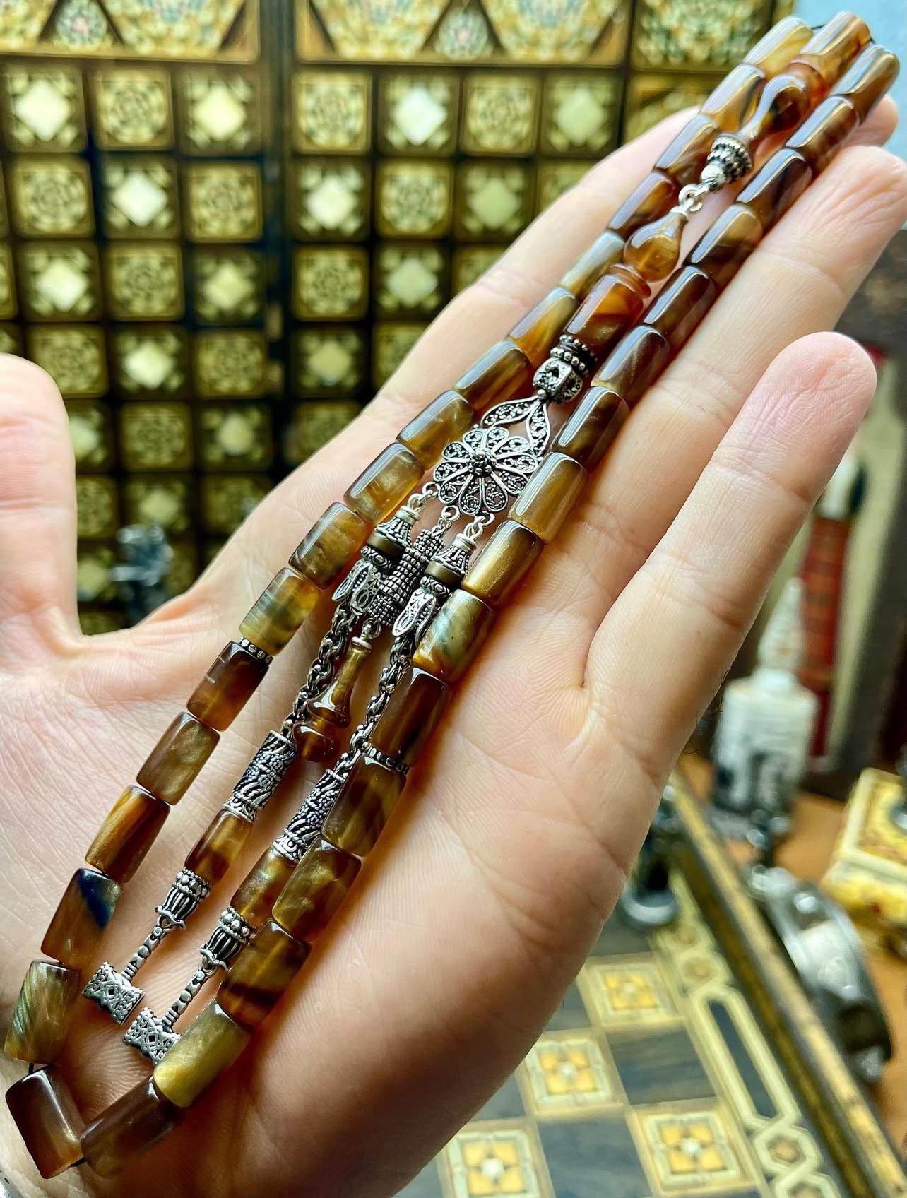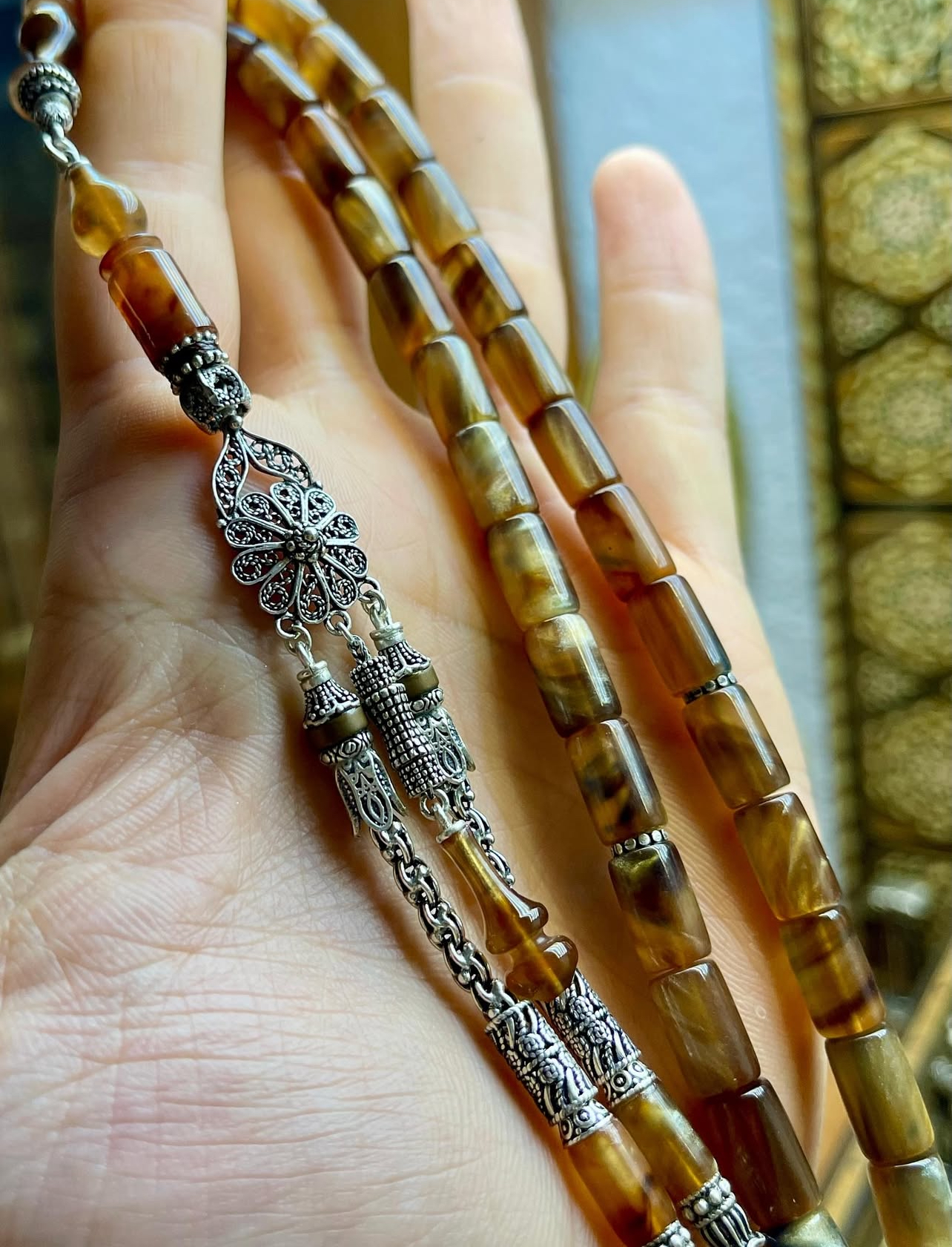 • Malzeme:Özel Döküm Sıkma Kehribar / 925 Ayar Gümüş • Renk:Gri • Kullanım:Koleksiyonluk • Habbe Ölçüsü:7X11mm • Habbe Sayısı:33 Habbe 925 Ayar Gümüş Püskülü İle Özel Bir Hediye Olarak Mükemmel Bir Seçim Olmasını Sağlayan Kendi Hediye Kutusunda Gelir.Tüm Ürünler Yanlızca Sınırlı Sayıda Mikro Parti Haline Üretilir....